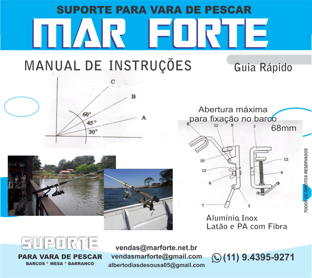 Suporte para vara de pescar a ser utilizada em barco, mesa ou barranco.